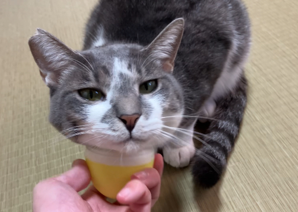 とWON・EGGをくんくん…ひとたび撫でてマッサージをしてあげると、気持ちよさげにうっとり