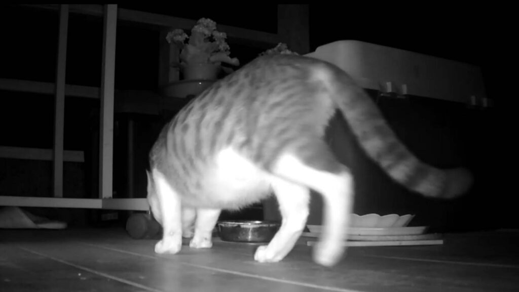 このオス猫、ご飯が置き餌だったこともあり、夜になってからひっそりと来ていたようです。