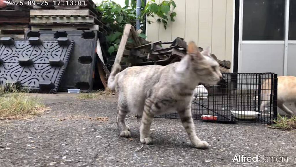 捕獲時、出向くと尻尾を立ててご飯の催促にやってきました。