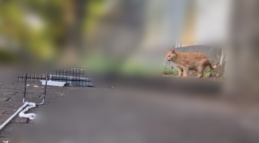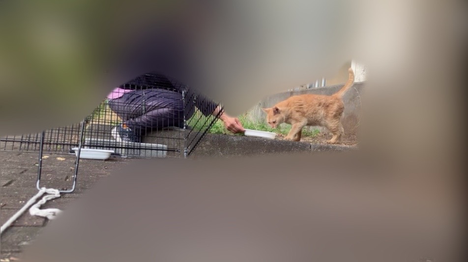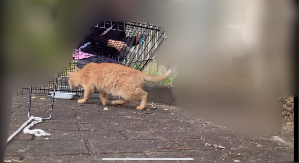 捕獲の相談をいただく数日前に、いつも通りごはんを食べた後、草むらで遊んでいたそうです。その時、突然茶トラさんが転げ回り、何かが切れたようにみえた瞬間走り去っていったそうです。それから翌日から餌場に来なくなってしまったそうです。