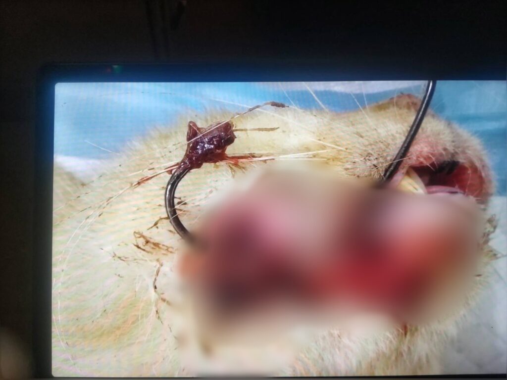 ある日、「お世話している猫が、口に釣り針のようなものが刺さっているようにみえる」と相談がありました。
