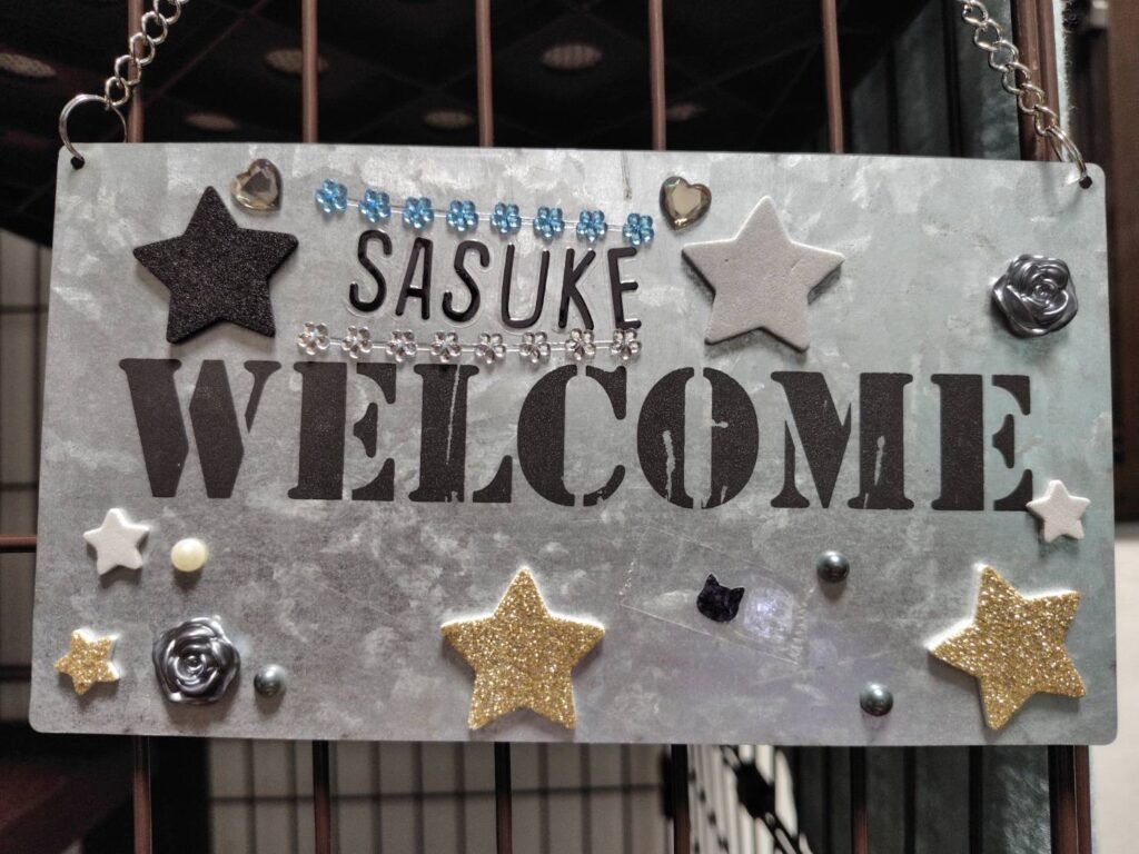 お姉ちゃんが超素敵なウェルカムボードを手作りしてくれ、メグ君からサスケ君になりました!!