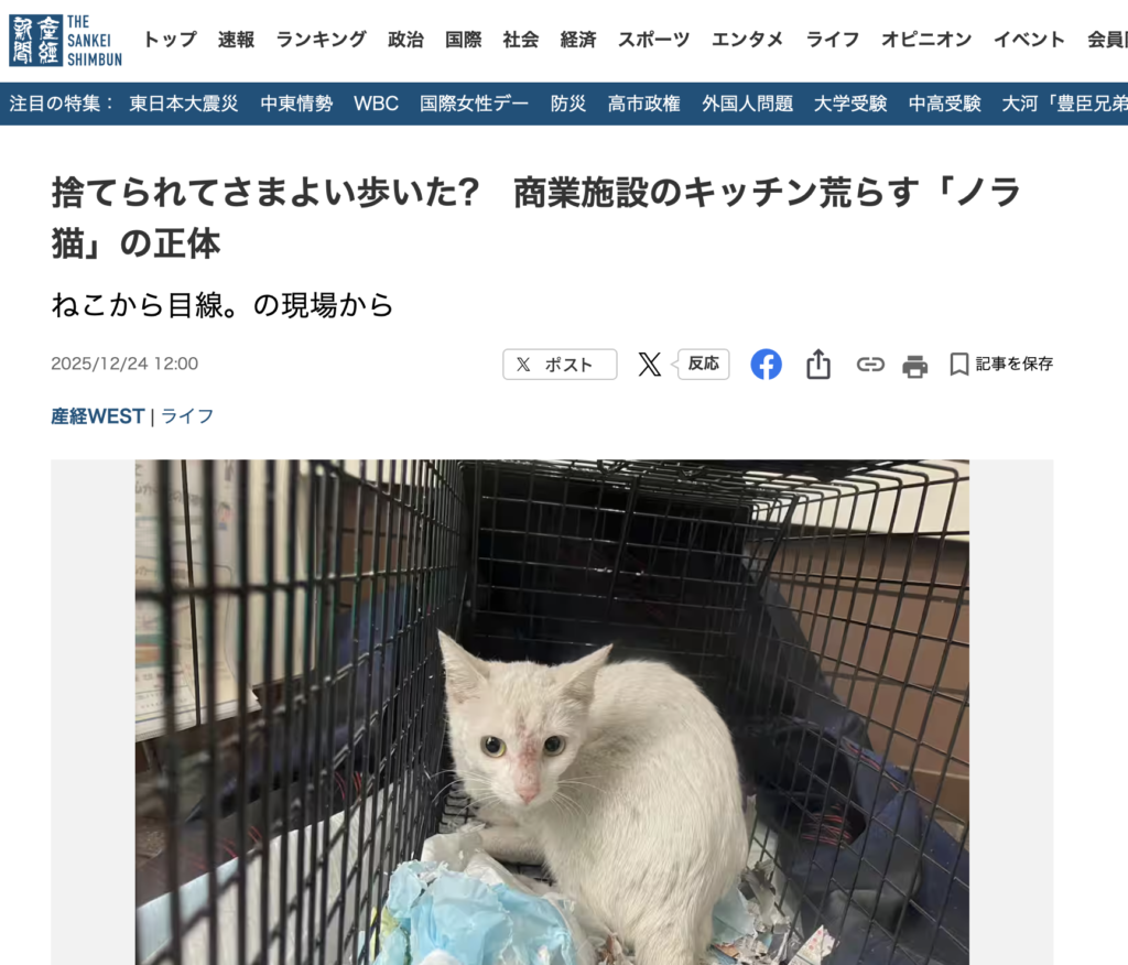代表の小池が産経新聞に連載している「ねこから目線。の現場から」。