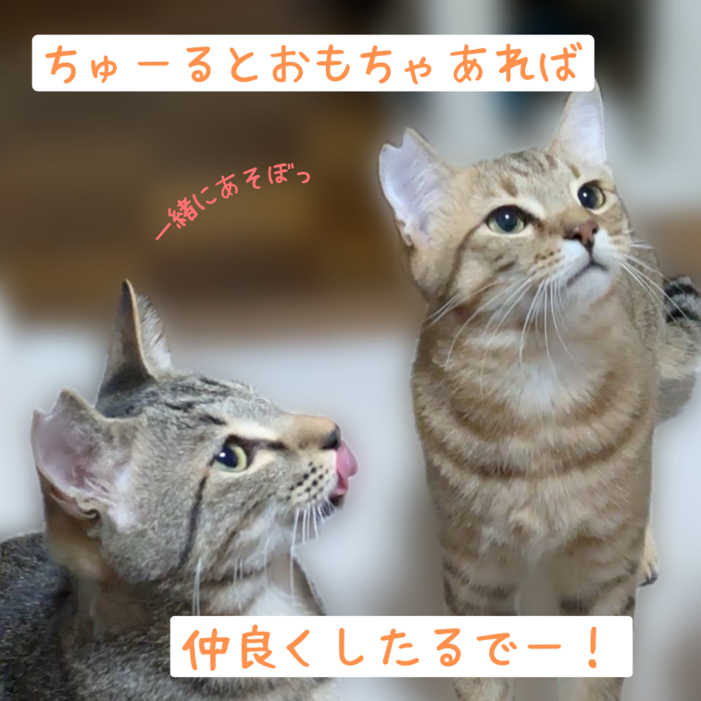 自宅の床下で子育てしていることが分かり、ごはんをあげているうちに、室内にお邪魔してくるようになった、キジトラボーイズ。