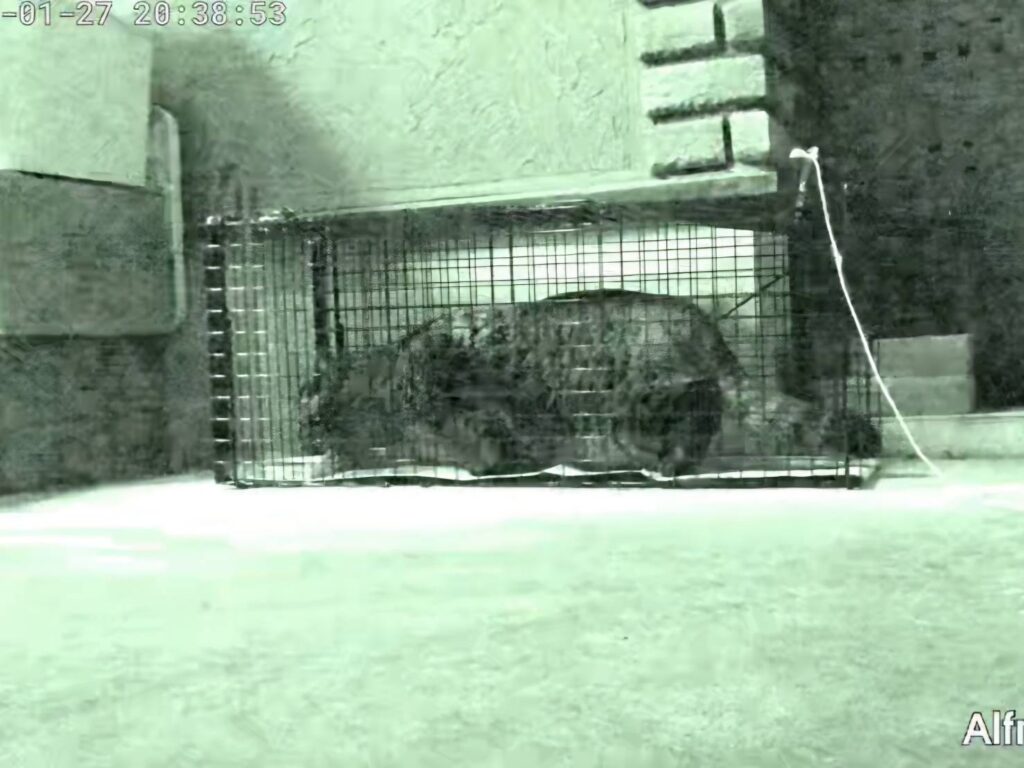 慎重に奥まで入ったのを確認し、紐を引いて捕獲成功です。