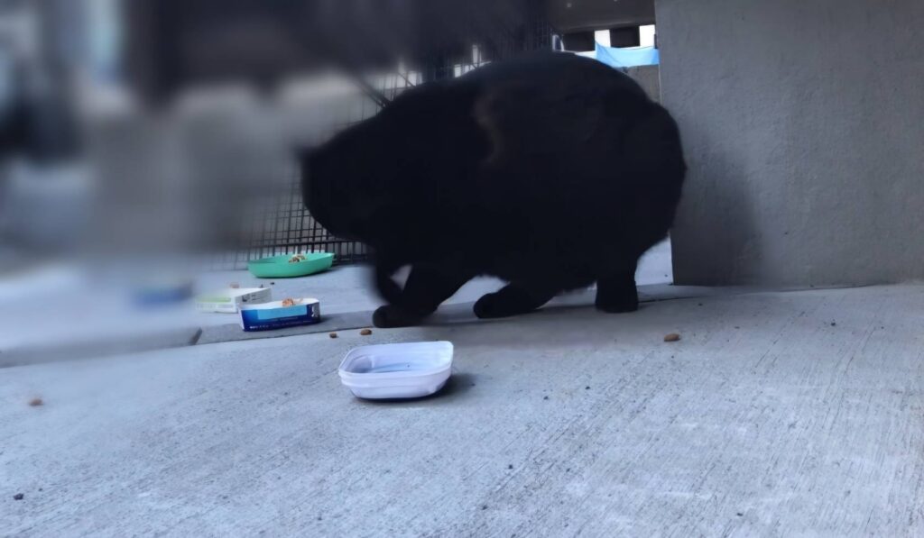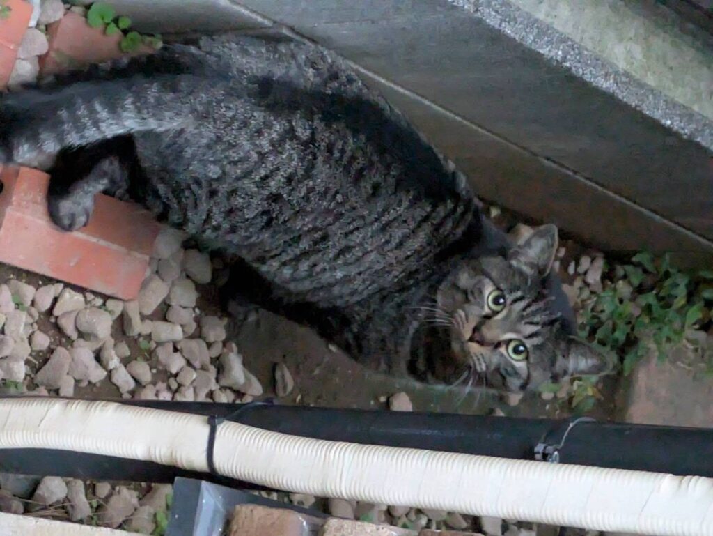 台東区のボランティアさんが探していたところ、通りを一本渡った区境の民家に食べに来ているという情報をキャッチ。実際に見に行くと、そこにいたのはまさにその黒猫さんでした。