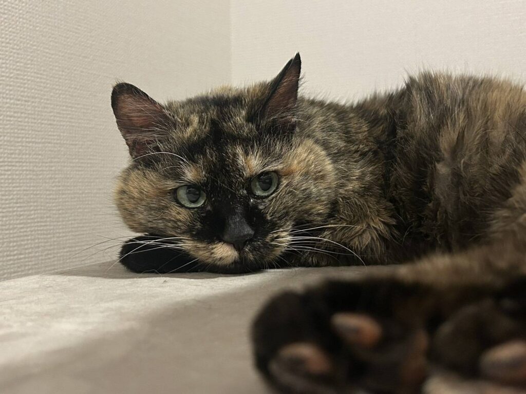 もともとワンちゃんと暮らしていたという今回の依頼者さん。次にお迎えする家族を考えていた仕事帰りの2月、突然現れたサビさんを見かけてから「運命かもしれない」と保護を決意されました。ケージを用意し、大きな鳴き声に備え防音対策まで施して、お迎え準備は万端。そうして今回ご依頼いただきました。